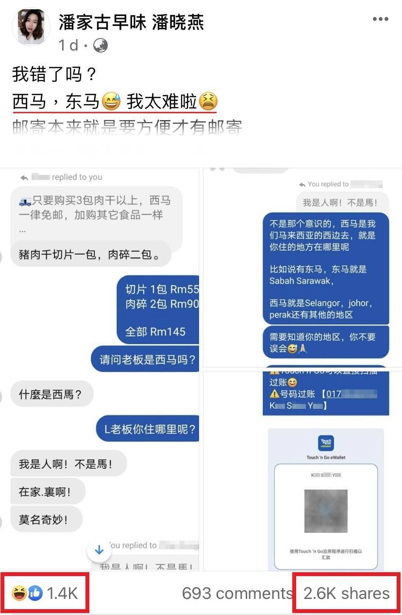 卖家努力解释西马与东马的区别,顾客却回答自己居住在吉隆坡,并因为需要在线付款而生气决定不购买。网友纷纷评论称这位顾客是在故意找茬,而卖家的耐心解答值得称赞。