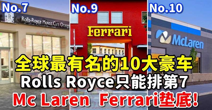 下面话不多说,赶紧上来堪世界上最着名的十大豪车吧,迈凯伦、法拉利垫底,兰博基尼第8,迈巴赫第6,第1果然实至名归。 第十名,Mclaren迈凯伦 品牌概括:始於1966年英国,隶属迈凯伦集团旗下,享誉F1赛场的国际公路跑车品牌,久负盛名的赛车工程公司